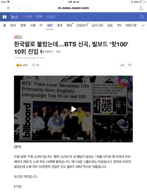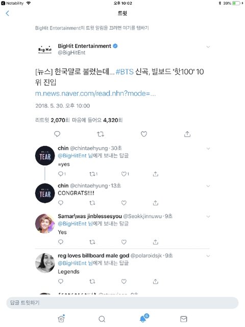 ㅋㅋㅋㅋㅋㅋ그저껜가 엔터톡에 올라온 글이었는데 어떻게 딱 오늘 핫100에서 10위권 안에 드냐 놀랍다 진짜ㅋㅋㅋㅋ