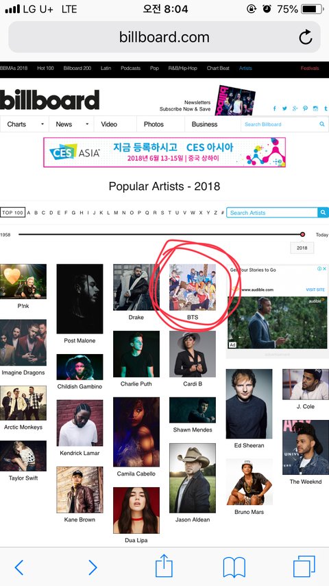 야 진짜 실화냐... 켄드릭라마,, 에드시런,, 테일러스위프트, 카밀라카베요,드레이크, 포스트말론,,브루노마스, 찰리푸스,셴멘데스 아니 진짜 팝덕 아닌 나도 들어본 이름 와 진짜;;; 와 국뽕 ㄹㅇ 오진다 진짜;;