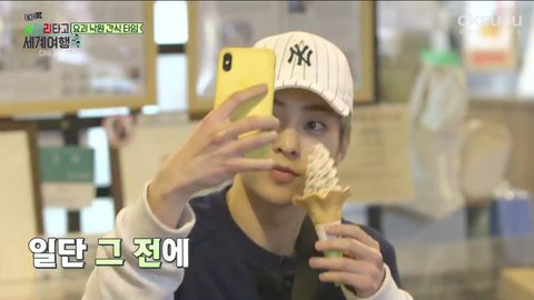 아이슈크림 쏘고 인증샷 찍는 맏형 시우민