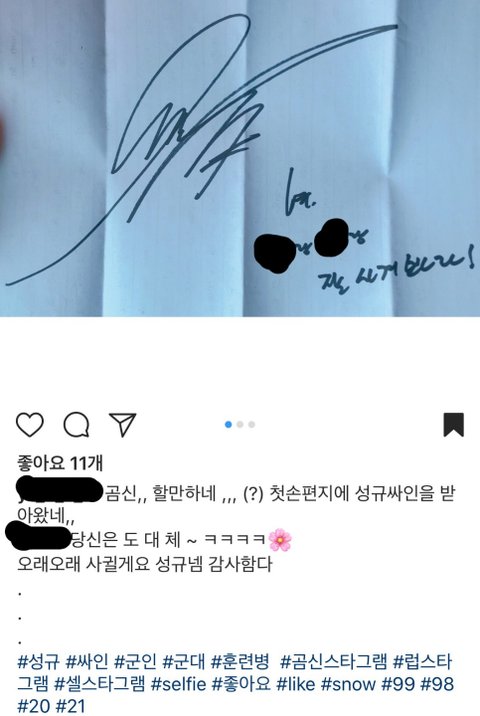 아진짜 10살 어린 동생들이 10살 많은 형아한테 찾아와서 싸인 부탁하면서 자기이름이랑 여자친구 이름 써달랬는데