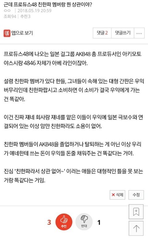 이건 설령 멤버가 친한이라도 문제가 많아.