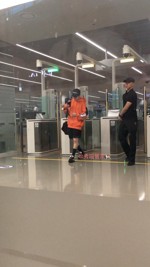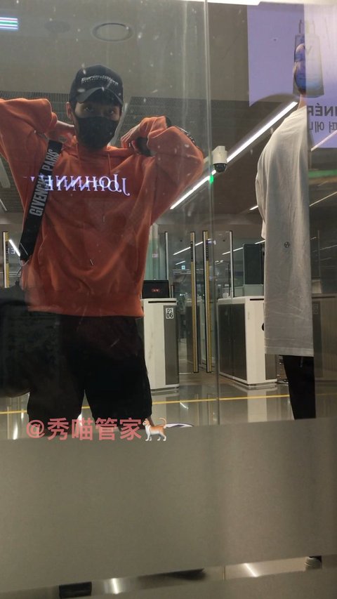 홍콩공항에서 거울보고 옷정리 하는 시우민 ㅋㅋㅋ