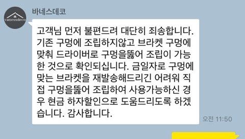 사실 마음같아선 월요일날 당장 제 업장으로 브라켓 들고 오라고 하고싶은데