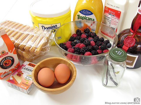 우선 케이크 껍데기로는 레이디핑거 쿠키와 오렌지 쥬스, 그랑 마니에르가 필요합니다.
