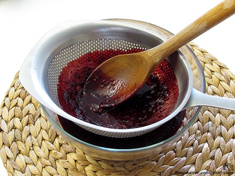 끓인 베리를 체에 한 번 걸러줍니다.