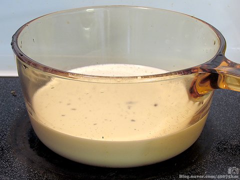주걱에 묻힌 다음 한번 스윽 긁어봤을 때 그 흔적이 고스란히 남을 정도의 되직함이 필요하거든요.