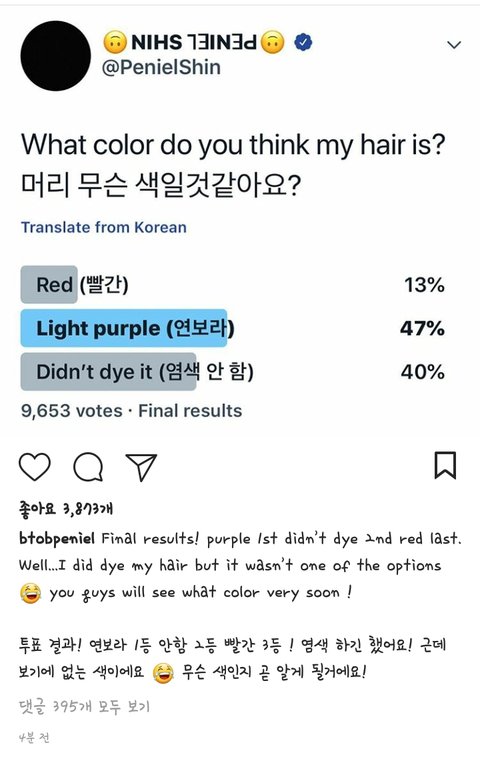 프니 피셜 염색했대!!!