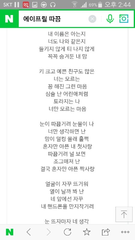 이거는 여자애가 남자애 좋아하는건데 눈이따끔거려서 눈물난다는 내용..?인것같아 노래는 밝은데 가사가 슬퍼