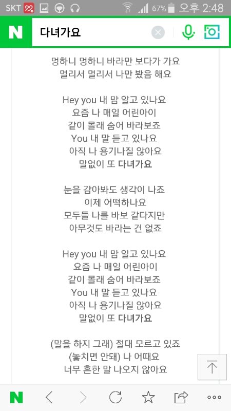 이거 내가 되게 좋아하는 노랜데 잔잔하고 그래서 듣기좋아ㅠㅠ 짝사랑 하는 마음이 넘 잘담겨잇움..