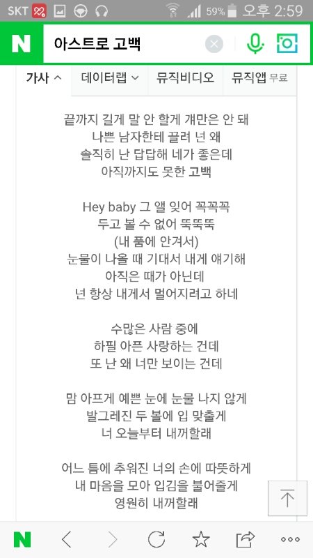 이거는 아스트로 노랜뎅 남자입장에서 좋아하는 여자애가 나쁜남자?를 좋아하는거야 그래서 걔말고 나는 어때 라잌 이런 느낌...? 그리고 이건 겨울에 듣는걸 더 추천ㅠㅠㅠ겨울에 들으면 더 짱임