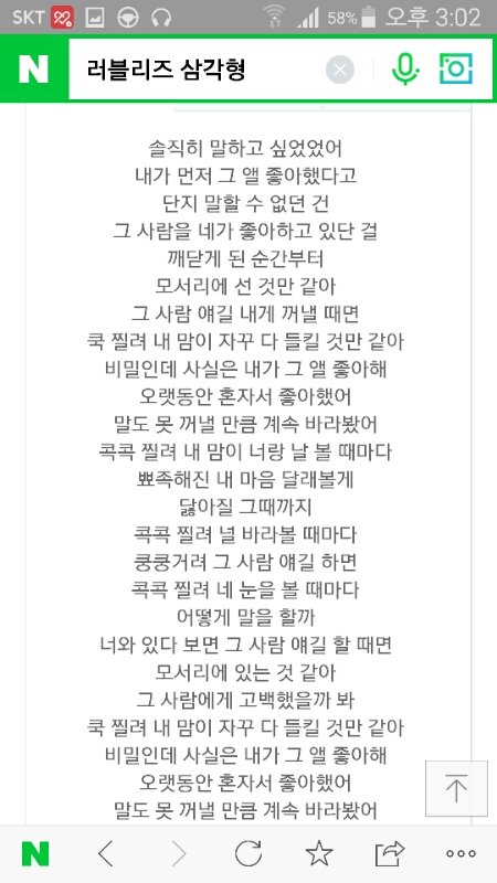 이거는 제목에서부터 알수있듯이 삼각관계임..ㅇㅇ 자기가 좋아하는 남자를 자기 친구도 좋아하는거ㅇㅇ 근데 슬픈건 그래서 그 남잘 포기하는 내용ㅠㅠㅠ 띵곡이야 들어봐
