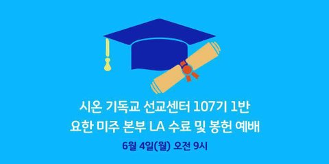 시온 기독교 선교센터 107기 1반 수료 및 봉헌예배로 초대합니다.