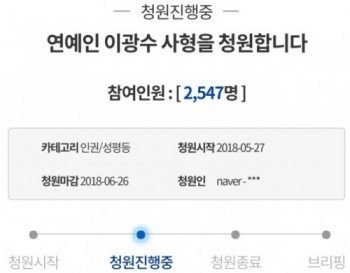 이거 진짜 너무하지않냐 물론 잘못한건 맞는데 이건 좀 아니지ㅋㅋㅋㅋㅋ 일부러 수지 사형청원처럼 한것같은데 2000명넘게 참여했다니 참 ㅋㅋㅋㅋㅋㅋ