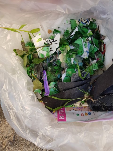 신랑과 저 소주병잔해 치웁니다...,... 착하신 옆집아저씨가 도와주시고...