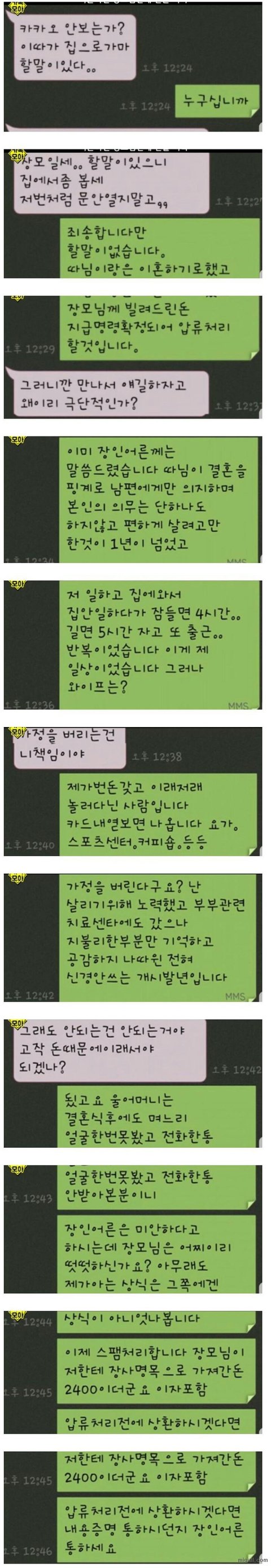 이혼으로 장모님에게 온 카톡