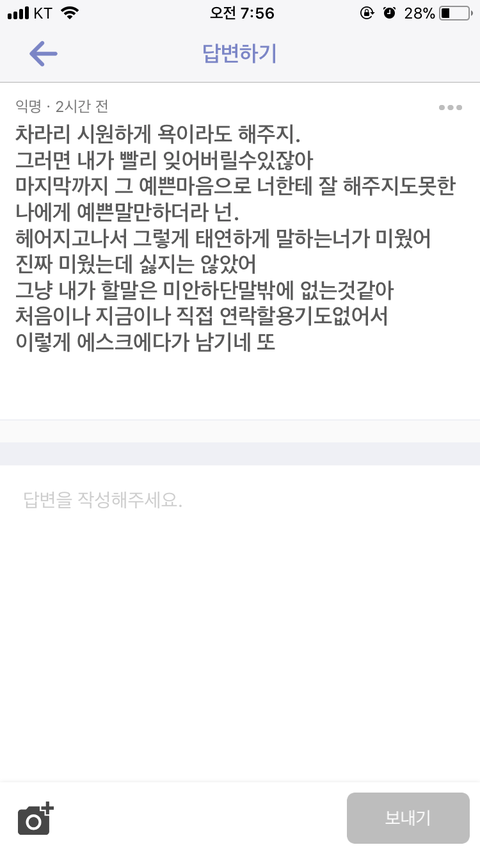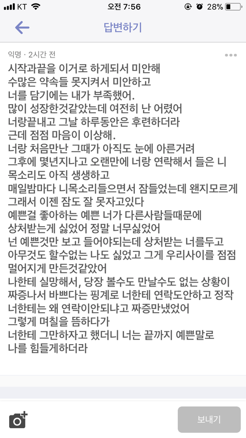 전남자친구는 해외로 유학갔었고 유학가기 전에 알던 사이였는데 초반에는 매일매일 장문편지 써주고 전화통화도 오래하고 사랑받는 느낌이 들었는데 제가 학교생활로 힘들어하고 남자친구도 제가 힘든 걸 보는 게 지쳐서 헤어진 상황이에요 어제 헤어지고 오늘 아침에 이렇게 왔는데 어떻게 하는 것이 좋을까요 ? 언니오빠들 여동생이라고 생각하시고 조언 부탁드려요 ㅠㅠㅠ 귀찮으시면 추반이라도 눌러주세요 ㅠㅠ