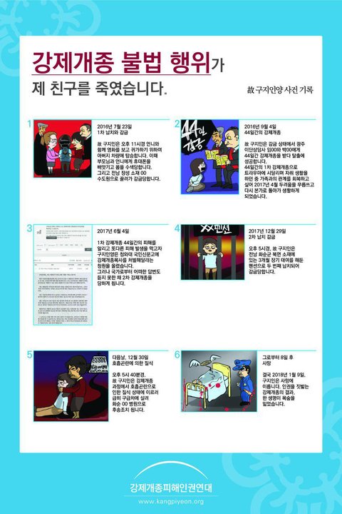 강제개종으로 사망했던 청년은 생전에 국민신문고에 강제개종금지법 제정을 간절히 호소하였지만 국가에선 아무런 조취를 하지 않았습니다.만일 이 청년의 호소를 국가에서 들어 주었다면 이러한 사망 사건은 벌어지지 않았을 것입니다!!