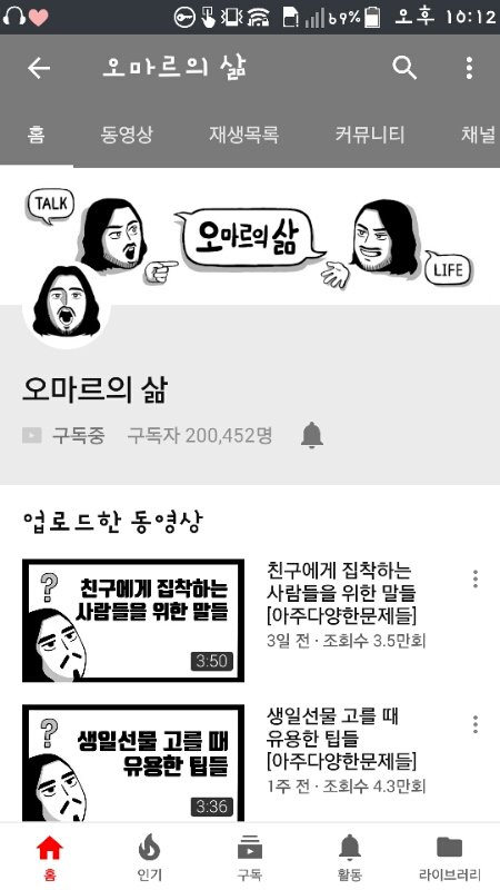 난 오마르의 삶 님!! 말을 넘넘 잘하시는것같아 남자분인데 페미니즘 관련 영상도 좀 찍으시고ㅎㅎ 진짜 괜찮아!!