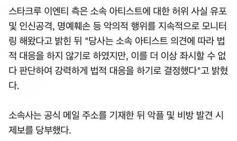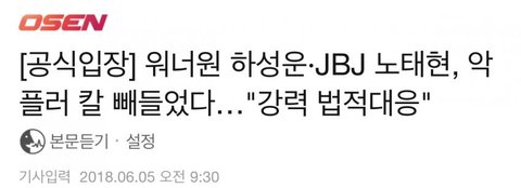 셍운이 악플러 강력 법적 대응
