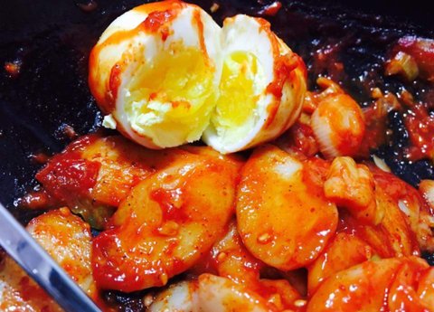 두번째는 바로 '떡볶이' 에요 계란은 반숙으로 삶아서 마지막에 올려주고 떡은 설날 때 할머니가 주신 떡국 떡을 사용했어요.