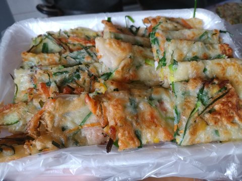 순서대로 '부추전' 이랑 '야채전' 이에요 집에 부침가루가 많아서 만들었어요!