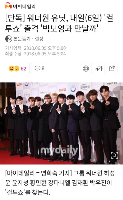 기사)워너원 유닛, 내일(6일) '컬two쇼' 출격