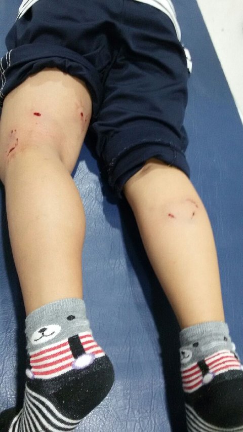 해서 벗겨보니 개가 물어 뜯어 놓아서 부모랑 할머니가 놀라서 아빠가 포항학산지구대에 전화를해서 아이가 개한테 물렸다고 와달라하니 그건 민사건이라 자기들은