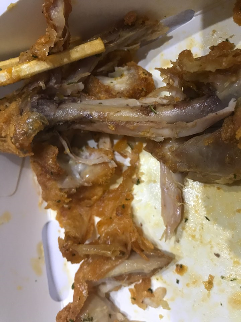그런데 먹다보니 닭에서 잡내가 나고 닭튀김 부분 살부분 전부 거무 튀튀한것이 질기고