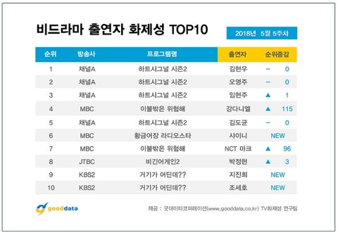 5월5주차 비드라마부문 출연자 화제성 4위 강다니엘