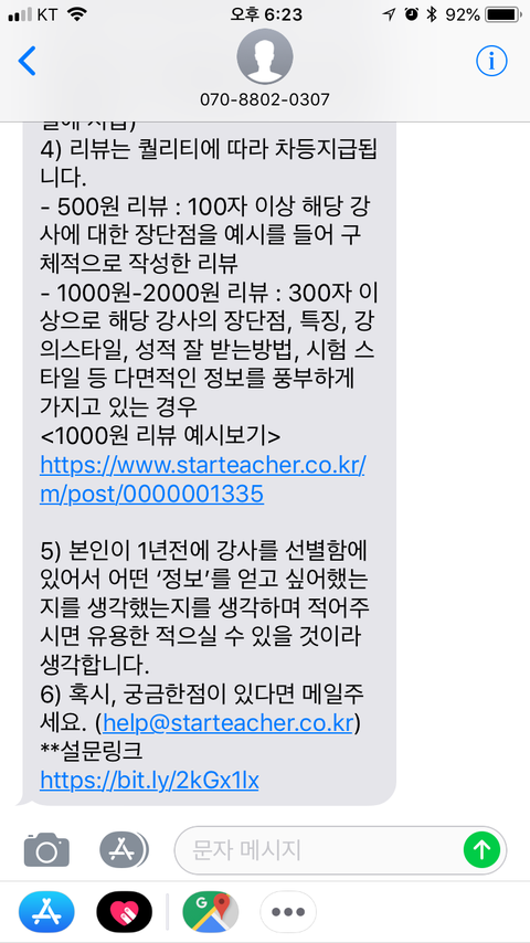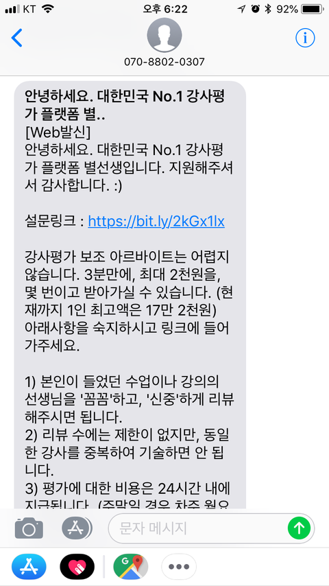 솔직히, 강사평가 보조 알바가 뭐지?? 싶었지만 시급 만원이길래 개 꿀이다! 하면서 그냥 지원서 냈는데, 한 한시간 후에 아래 사진처럼 띡 문자 하나 날라왔고,