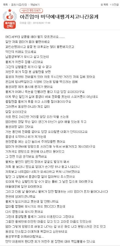 아픈엄마 바닥에 내팽게치고 나간 올케