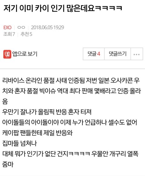 저 카이팬이 다 맞는 말만 했는데 왜 저래 그로줌마