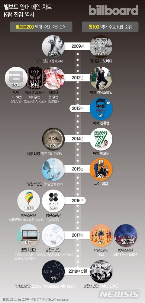 응 2015년 이후로 빌보드 차트에 방탄만 있었음~ 낙폭이니 뭐니 개소리요~ 빌보드가 멜론인줄 아나바 ㅋㅋㅋㅋㅋ