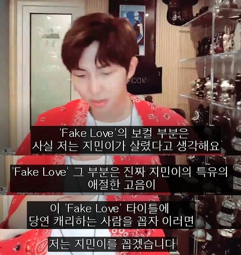 이 곡의 프로듀싱에 참여한 알엠은 최근 브이앱에서 지민이 페이크럽을 캐리하고 있다고까지 칭찬했을 정도