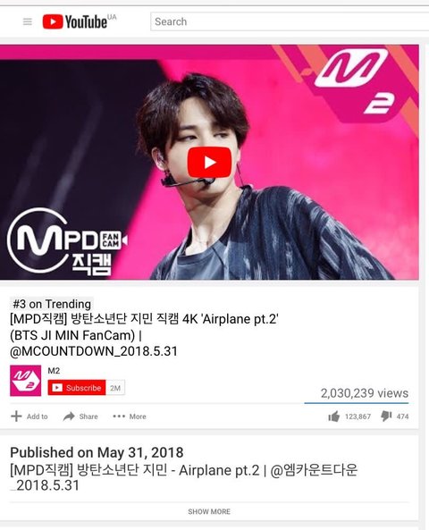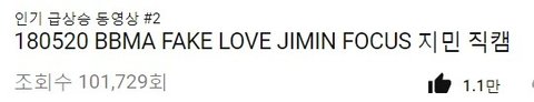 (지민은 이 날 직캠이 가장 많이 뜬 멤버라 조회수가 분산 됐는데도 실시간 랭킹에 들었단건 진짜 대단한 일)