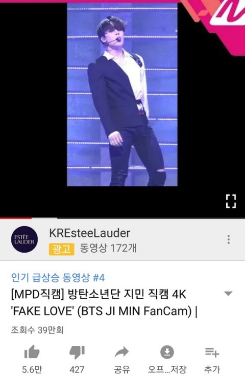 지난 5월 방탄이 빌보드에서 페이크러브 무대를 처음 선보이고 유튜브에 다량의 직캠이 업로드 됐는데