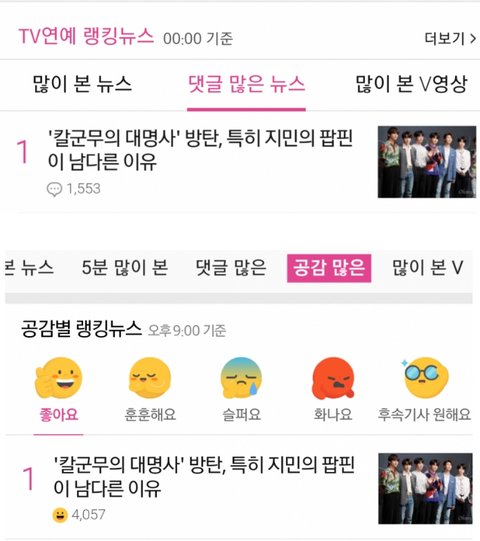 네이버 뉴스 공감 랭킹 1위, 댓글 랭킹 1위에 오르기도 함