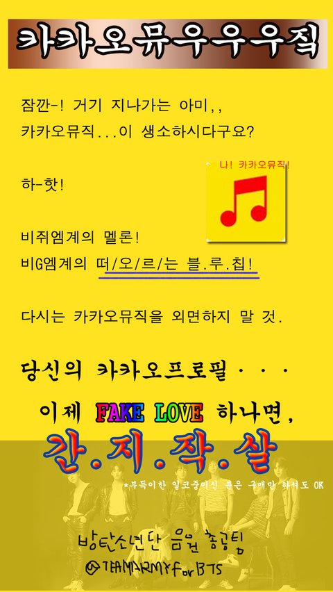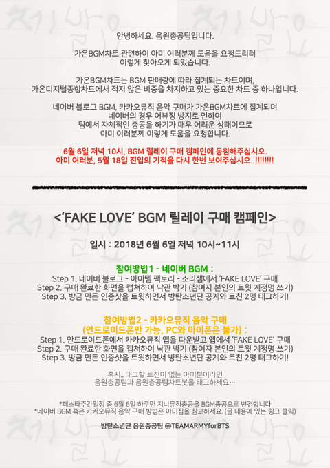 음원 관련 질문은 방탄소년단음원총공팀 카카오톡 플러스 친구로
