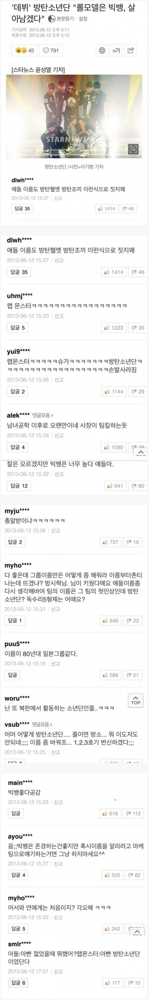 마지막 댓글은 당시에는 비꼬려는 의도로 쓴건데 지금은 방탄이 의미를 바꿔버림ㅋㅋㅋㅋㅋ 진짜 대단하다
