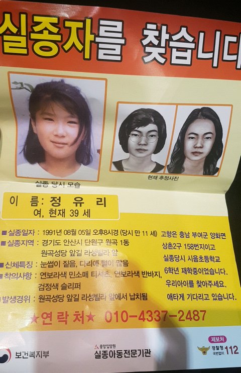 지하철에서 할아버지 한분이 승객들에게 전단지를 나누어 주는것을 보았습니다. 십수년전에 잃어버린 딸같은데 납치된지 27년이 지난 지금도 딸을 찾기위해 애타게 지하철을 돌며 사람들에게 전단지를 나누어주는 할아버지 모습에 마음이 아파서 여기에 올려봅니다. 얼마나 간절히 찾고싶으면 잃어버린지 수십년이 지난 어떻게 됐는지도 모르는 딸을 찾기위해 지하철을 돌며 전단지를 나누어줄까.. 많은사람들이 봤으면 하는 마음에 여기에 올려봅니다. 방탈 죄송합니다.