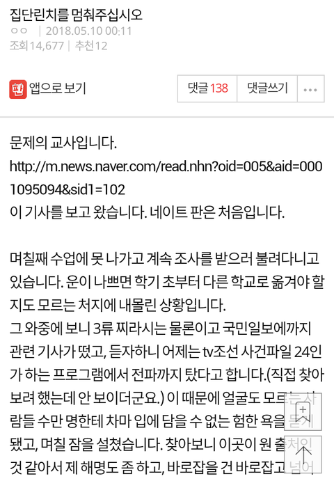 이거 간만에 찾아봤는데 삭제돼 있더라고요? 징계 회피라도 하려는 건가? 근데 이를 어쩌나...ㅎㅎ 이미 스샷 다 찍어놨는데...