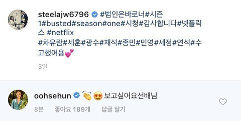 안재욱님 인별에 세훈이 댓글