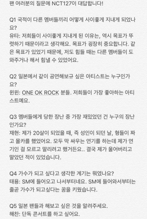 일본인터뷰에서 아티스트 대보라면 항상 태용이나 유타가 원오크락 대는데 이번엔 윈윈도ㅋㅋㅋ