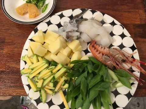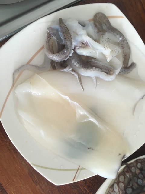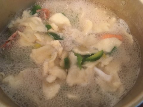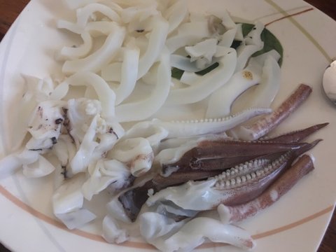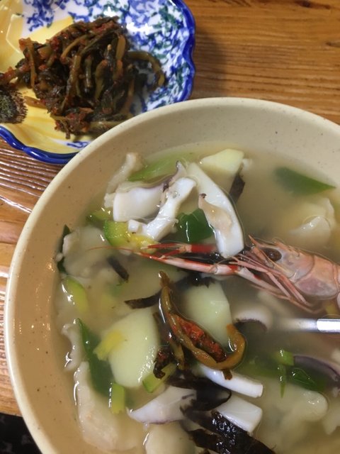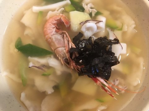 무늬오징어와 딱새우가 들어간 수제비