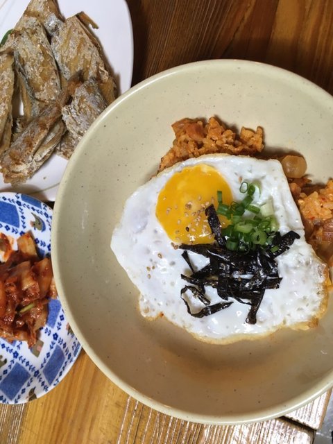 갈치구이,김치볶음밥,조릿대차