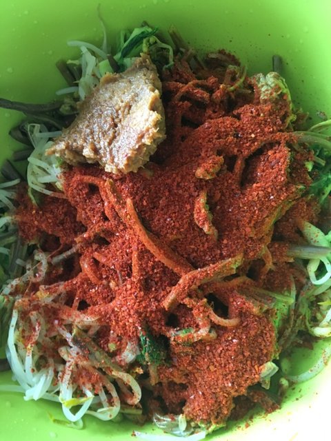 청귤말린것,얼갈이삶아둔것,표고말린것,붉은고추,톳삶아둔것