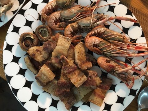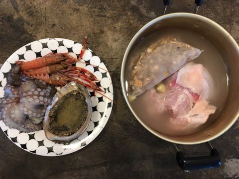 돌문어,자연산전복,딱새우가 들어간 백숙에 삼겹이