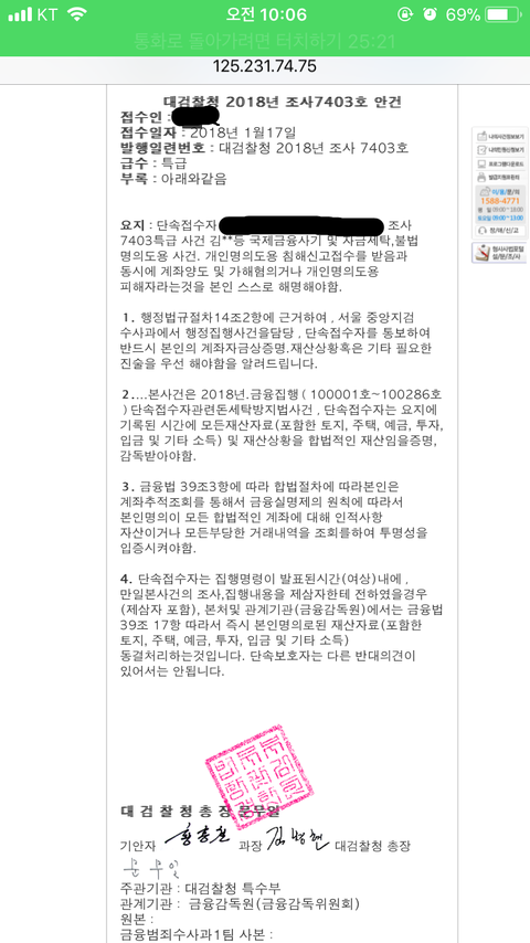 그 아이피주소로 접속 한 사이트는 대 검찰청 홈페이지였고, 사건 조회를 해 보라고 했습니다.