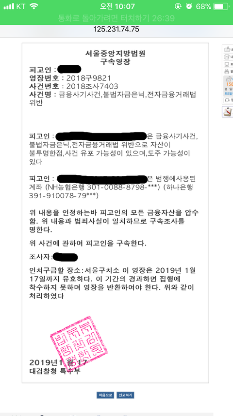 정말 제 이름으로 구속영장이 발부되어 있었습니다.