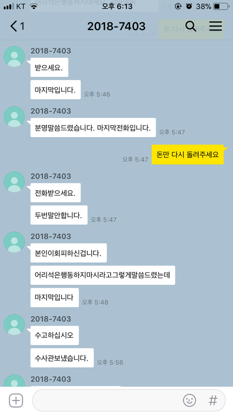 그냥 이렇게 말 들을테니 돈 돌려주길 바라고 시키는대로 했습니다.